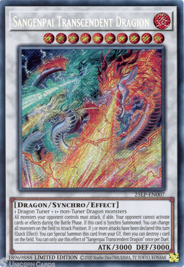 - 25LP-EN007 Sangenpai Transcendent Dragion : Secret Rare Limited Edition Mint YuGiOh Card