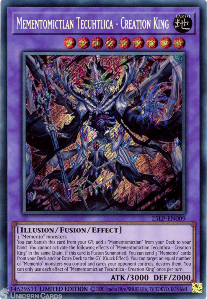 - 25LP-EN009 Mementomictlan Tecuhtlica - Creation King : Secret Rare Limited Edition Mint YuGiOh Card