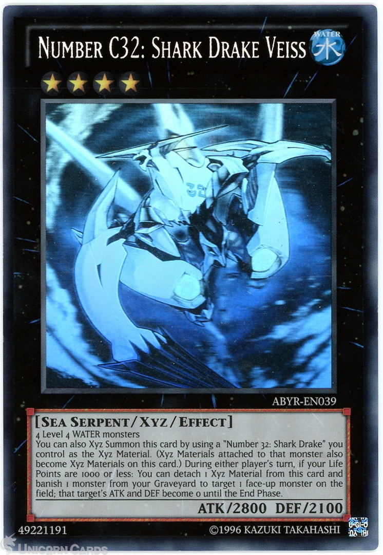 - ABYR-EN039 Number C32: Shark Drake Veiss Ghost Rare UNL Edition Mint YuGiOh Card
