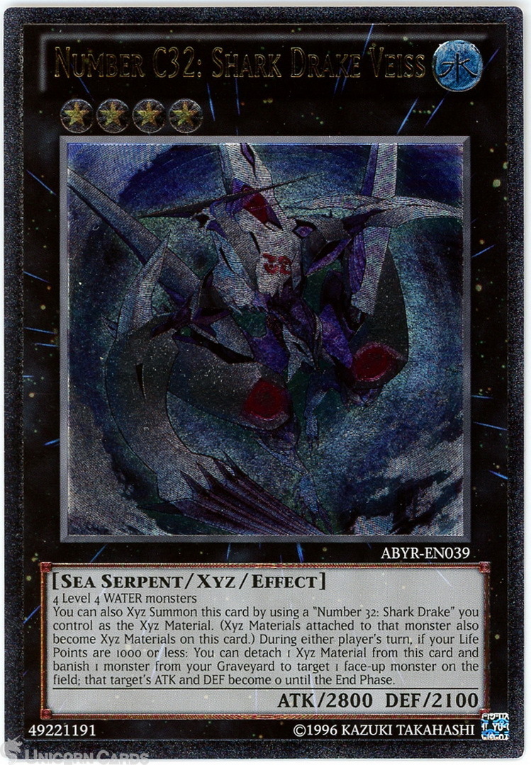 - ABYR-EN039 Number C32: Shark Drake Veiss Ultimate Rare UNL Edition Mint YuGiOh Card