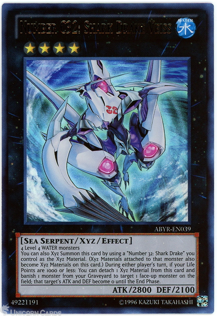 - ABYR-EN039 Number C32: Shark Drake Veiss Ultra Rare UNL Edition Mint YuGiOh Card