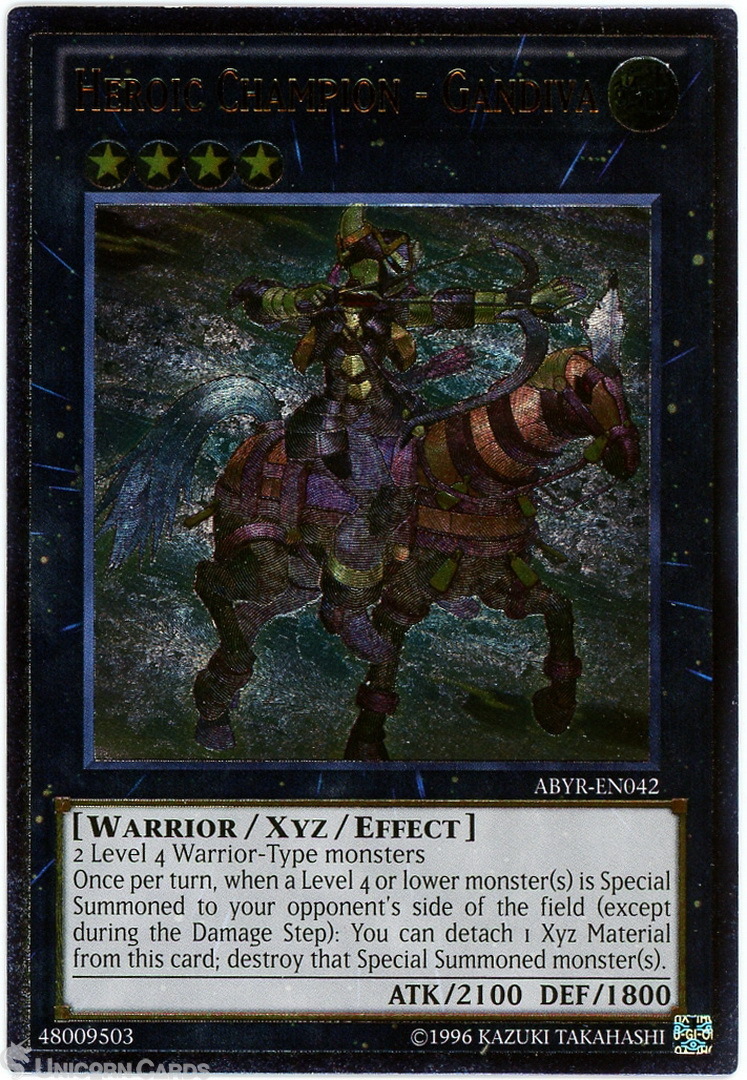 - ABYR-EN042 Heroic Champion - Gandiva Ultimate Rare UNL Edition Mint YuGiOh Card