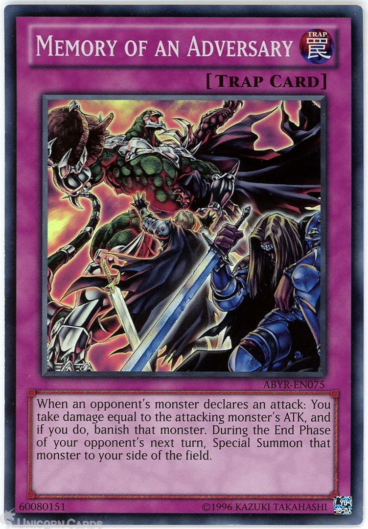 - ABYR-EN075 Memory of an Adversary Super Rare UNL Edition Mint YuGiOh Card