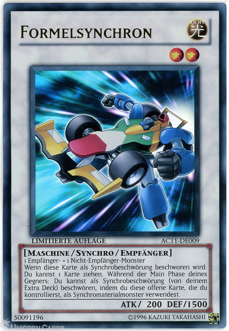 - AC11-DE009 Formula Synchron Ultra Rare UK Tournament Legal GERMAN YuGiOh Card