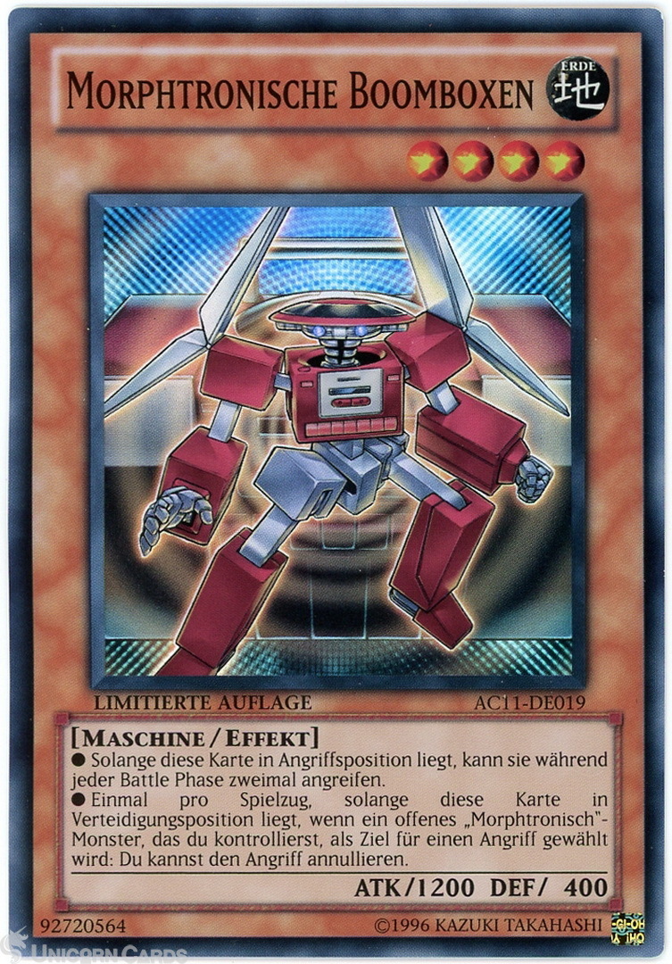 - AC11-DE019 Morphtronic Boomboxen Super Rare UK Legal GERMAN YuGiOh Card