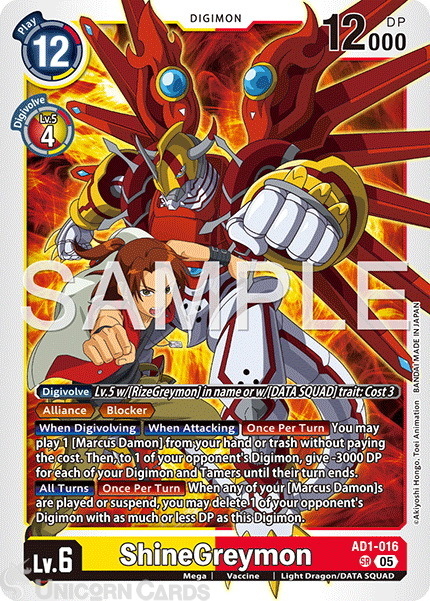 AD1-016 ShineGreymon : Super Rare Foil : AD01: Advanced Booster Digimon Generation