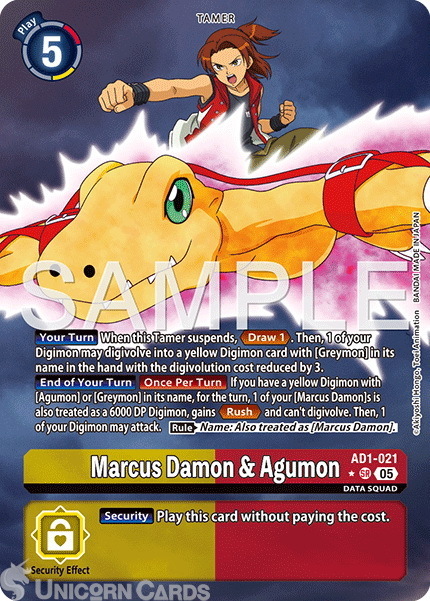 AD1-021 Marcus Damon & Agumon : Super Rare Foil Alternative Art : AD01: Advanced Booster Digimon Generation