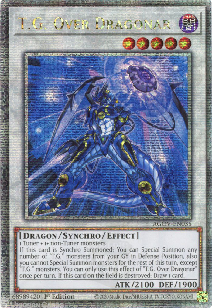 - AGOV-EN035 T.G. Over Dragonar :: Quarter Century Secret Rare 1st Edition YuGiOh Card