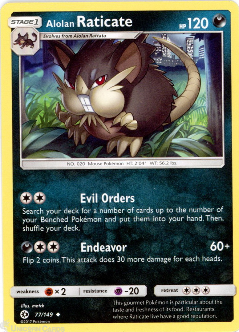 Alolan Raticate 77/149 : Uncommon Mint/Near Mint Pokemon Card : SM01: Sun & Moon