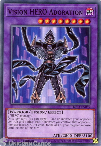 - BLC1-EN069 Vision HERO Adoration : Common 1st Edition YuGiOh Card