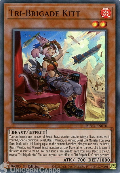 - BLVO-EN010 Tri-Brigade Kitt Super Rare 1st Edition Mint YuGiOh Card