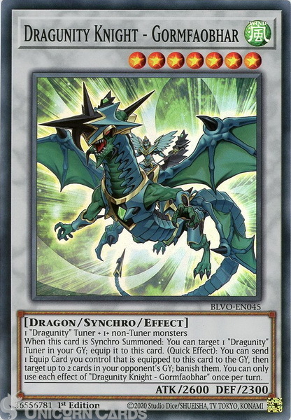 - BLVO-EN045 Dragunity Knight - Gormfaobhar Super Rare 1st Edition Mint YuGiOh Card