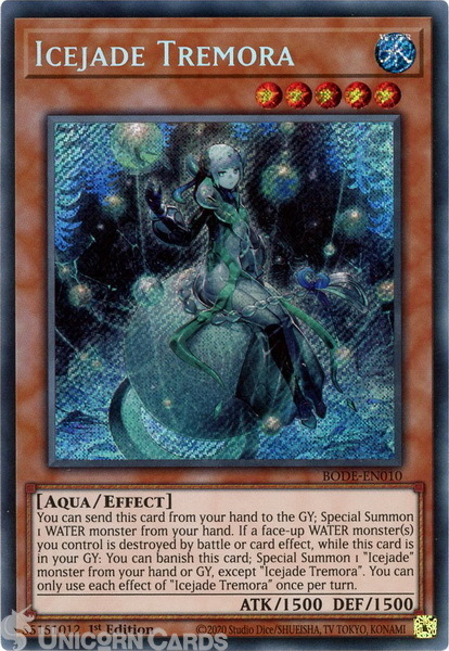 - BODE-EN010 Icejade Tremora Secret Rare 1st Edition Mint YuGiOh Card