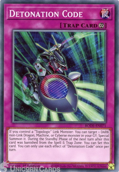 - BODE-EN071 Detonation Code : Common : 1st Edition Mint YuGiOh Card