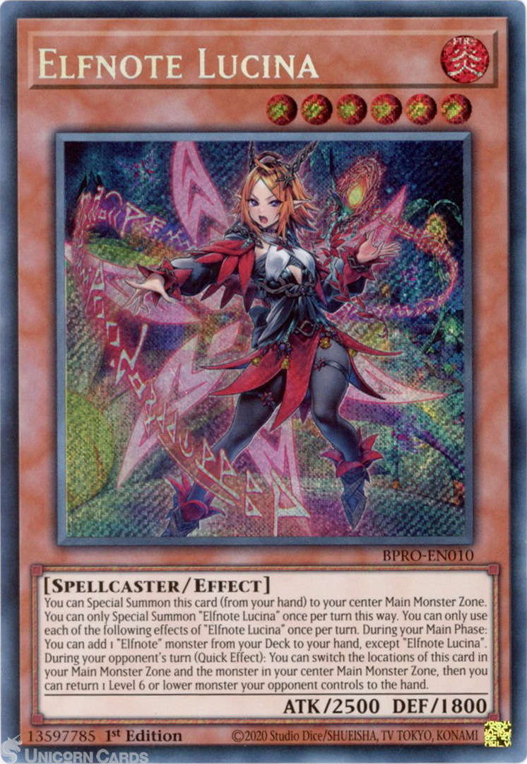 - BPRO-EN010 Elfnote Lucina : Secret Rare 1st Edition Mint YuGiOh Card