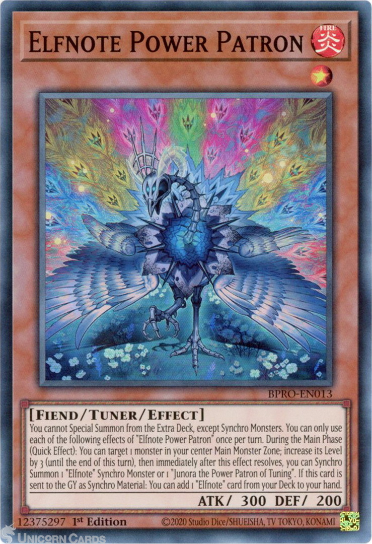 - BPRO-EN013 Elfnote Power Patron : Super Rare 1st Edition Mint YuGiOh Card