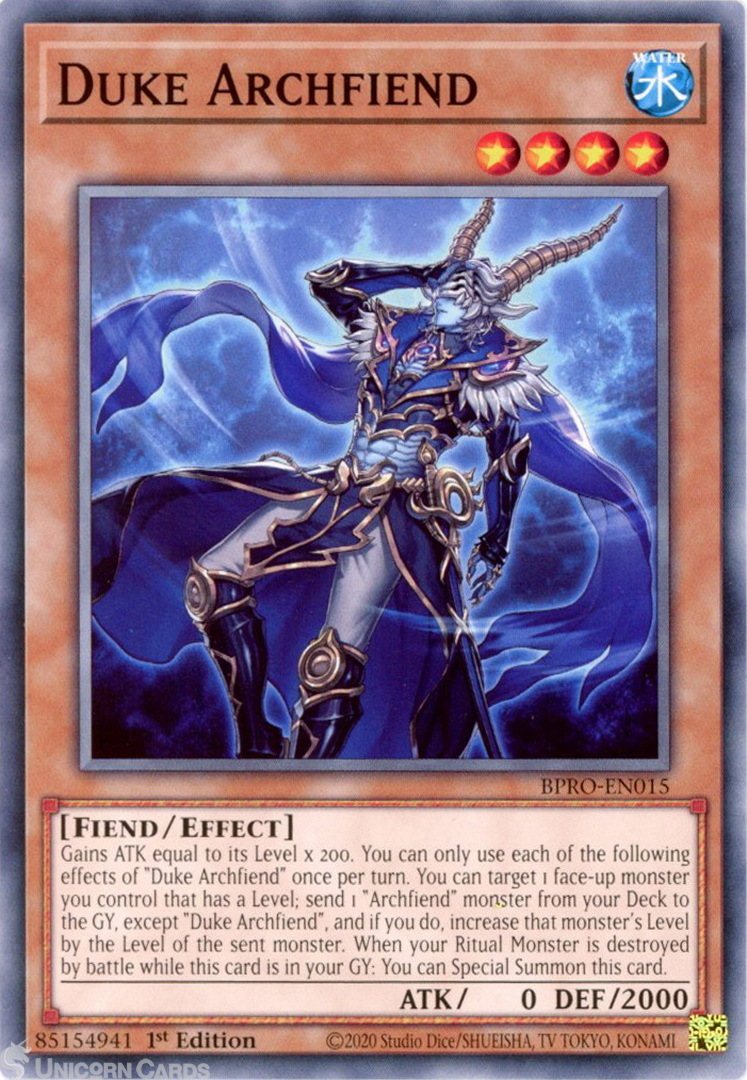 - BPRO-EN015 Duke Archfiend : Common 1st Edition Mint YuGiOh Card