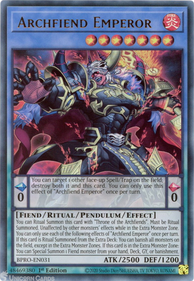 - BPRO-EN031 Archfiend Emperor : Ultra Rare 1st Edition Mint YuGiOh Card