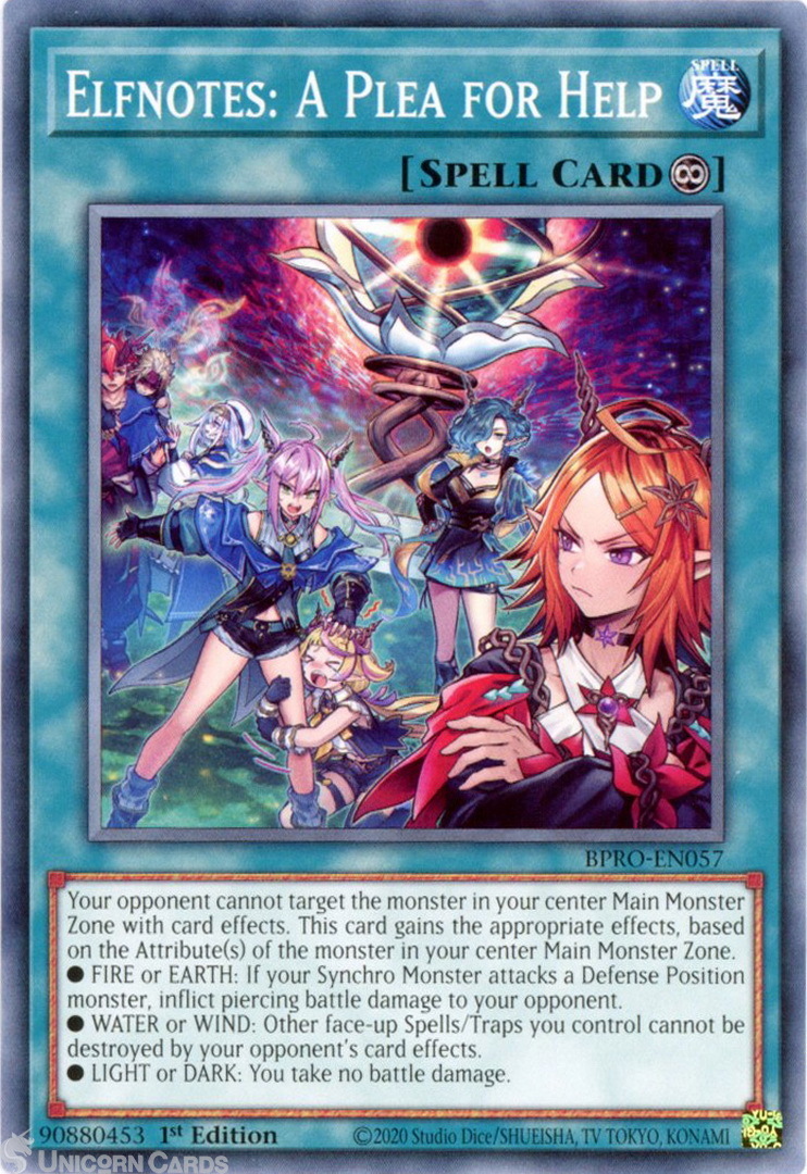 - BPRO-EN057 Elfnotes: A Plea for Help : Common 1st Edition Mint YuGiOh Card