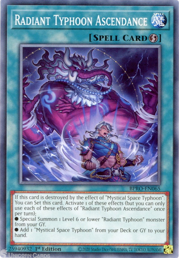 - BPRO-EN065 Radiant Typhoon Ascendance : Common 1st Edition Mint YuGiOh Card