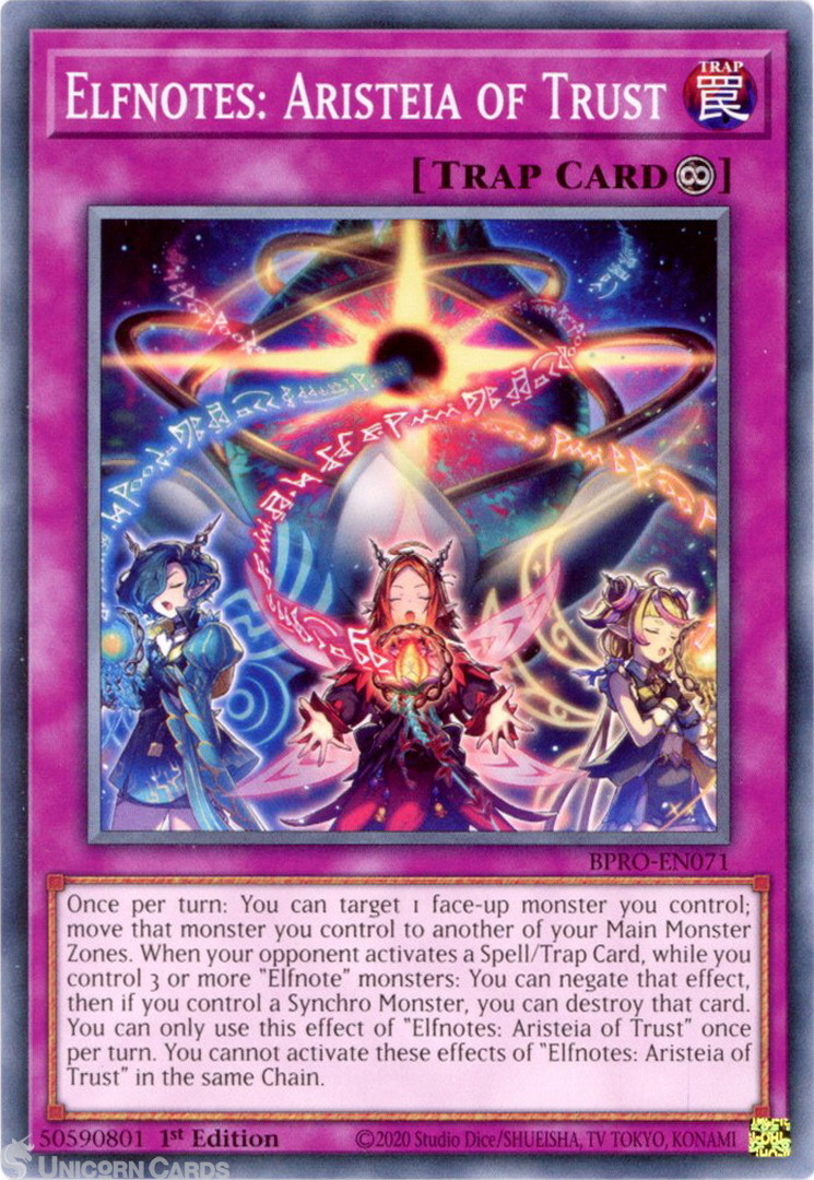 - BPRO-EN071 Elfnotes: Aristeia of Trust : Common 1st Edition Mint YuGiOh Card