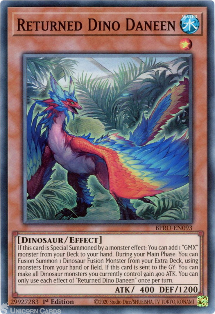 - BPRO-EN093 Returned Dino Daneen : Super Rare 1st Edition Mint YuGiOh Card