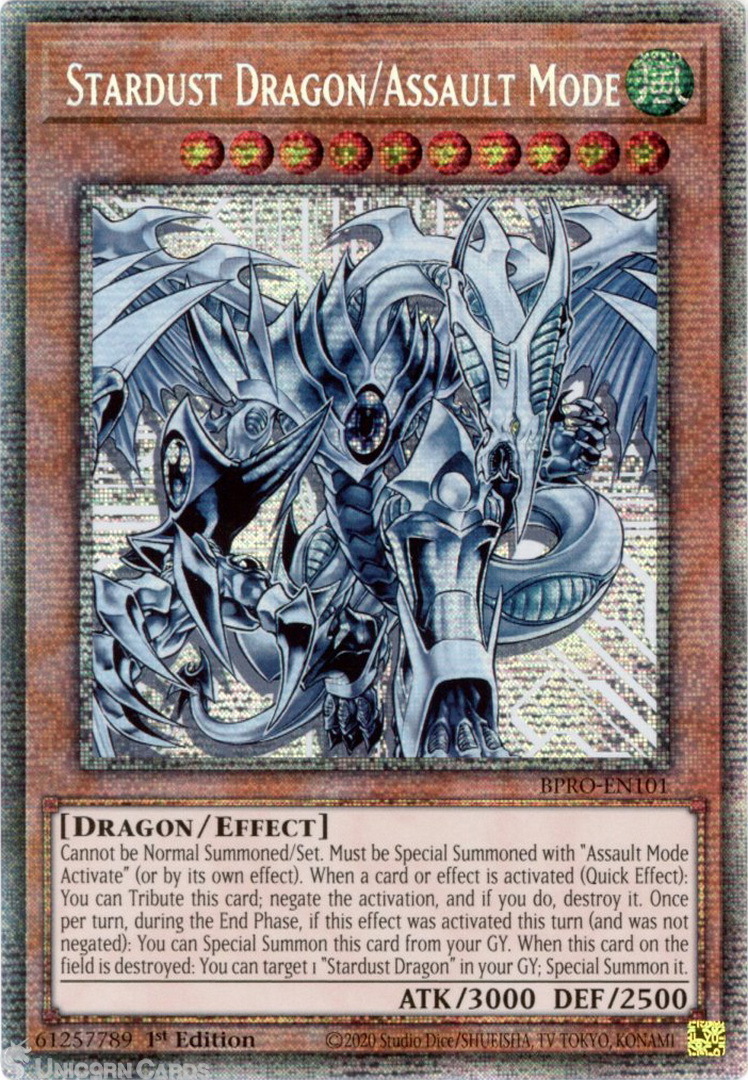 - BPRO-EN101 Stardust Dragon/Assault Mode : Starlight Rare 1st Edition Mint YuGiOh Card