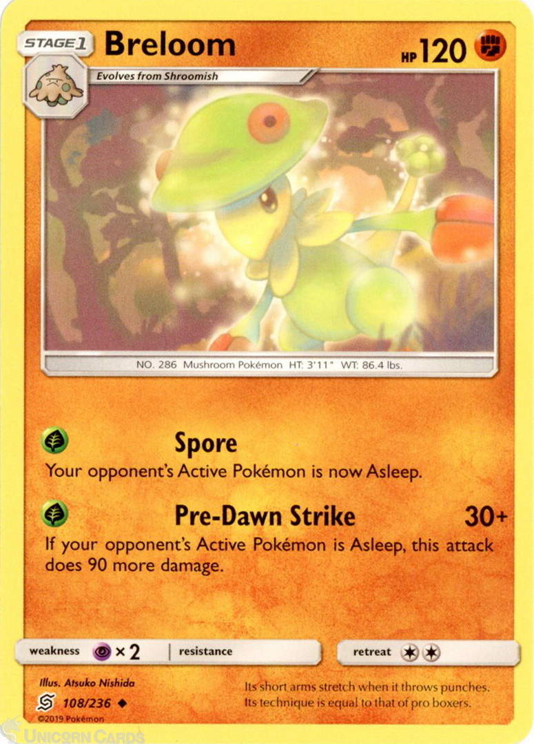 Breloom 108/236 : Uncommon Mint/Near Mint Pokemon Card : SM11: Unified Minds