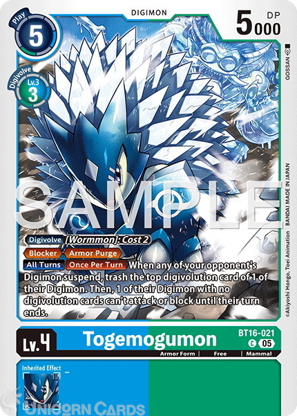 BT16-021 Togemogumon : Common Foil : AD01: Advanced Booster Digimon Generation