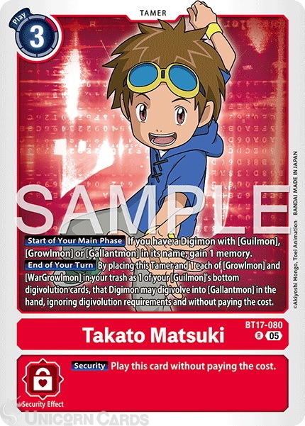 BT17-080 Takato Matsuki : Rare Foil : AD01: Advanced Booster Digimon Generation