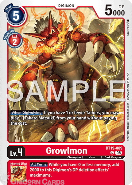 BT19-009 Growlmon : Common Foil : AD01: Advanced Booster Digimon Generation