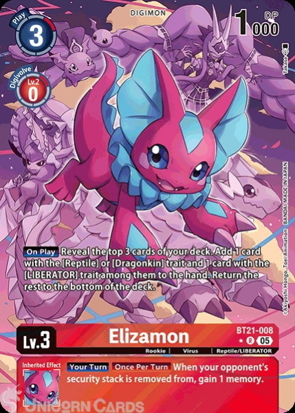BT21-008 Elizamon : Rare Alternative Art Digimon Card : BT21: Booster World Convergence