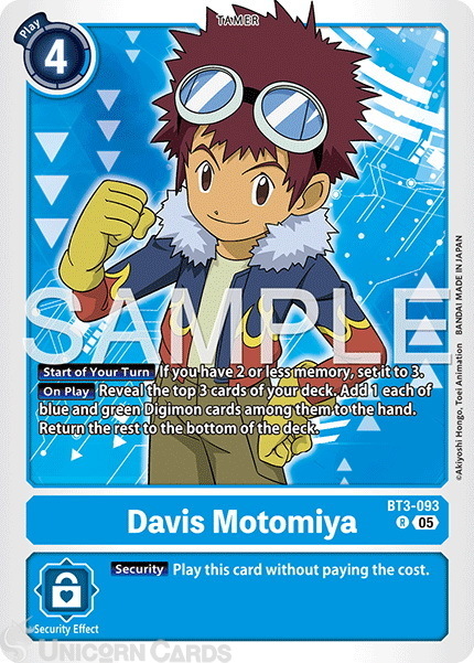 BT3-093 Davis Motomiya : Rare Foil : AD01: Advanced Booster Digimon Generation