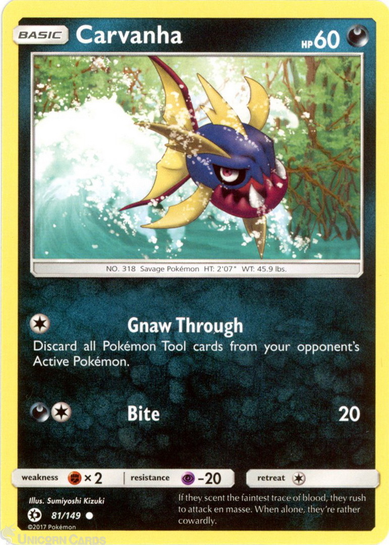 Carvanha 81/149 : Common Mint/Near Mint Pokemon Card : SM01: Sun & Moon