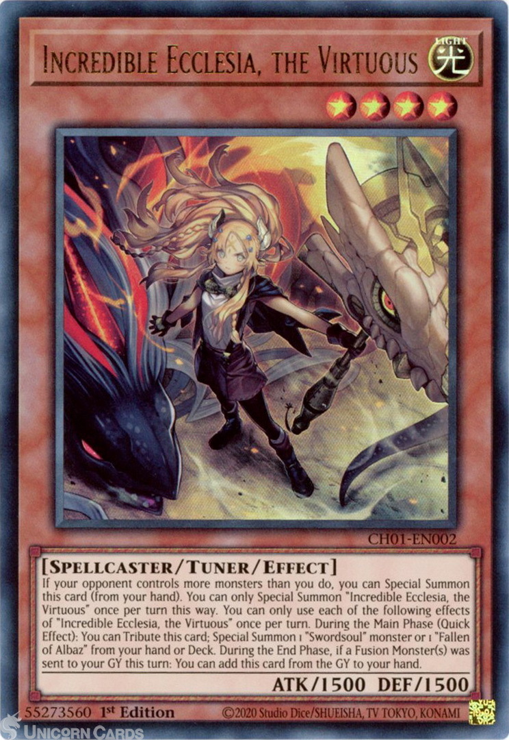 - CH01-EN002 Incredible Ecclesia, the Virtuous : Ultra Rare 1st Edition Mint YuGiOh Card