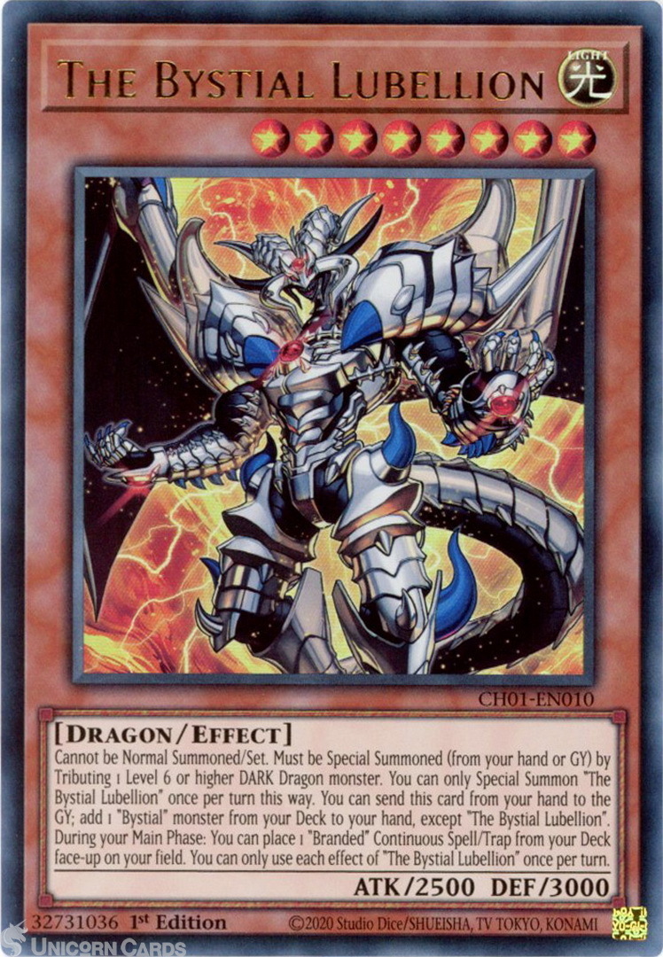 - CH01-EN010 The Bystial Lubellion : Ultra Rare 1st Edition Mint YuGiOh Card