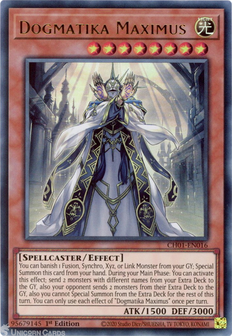 - CH01-EN016 Dogmatika Maximus : Ultra Rare 1st Edition Mint YuGiOh Card