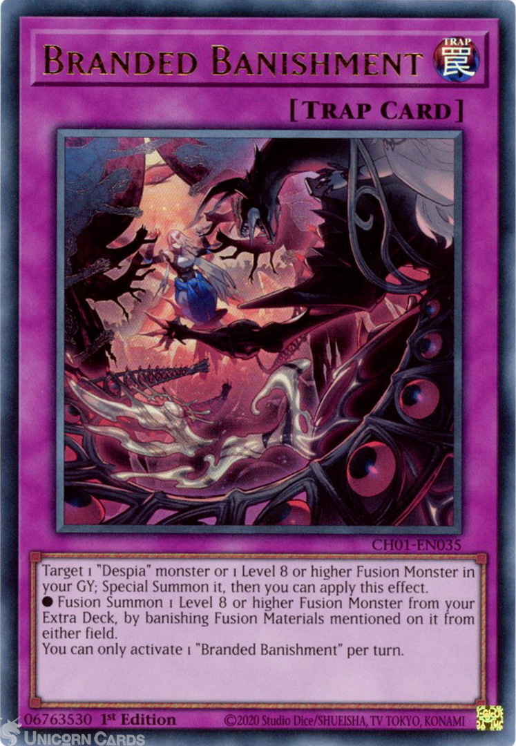 - CH01-EN035 Branded Banishment : Ultra Rare 1st Edition Mint YuGiOh Card
