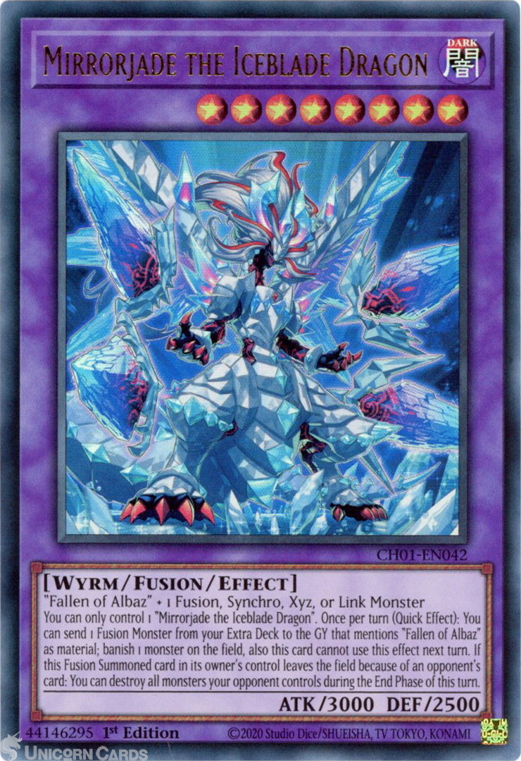 - CH01-EN042 Mirrorjade the Iceblade Dragon : Ultra Rare 1st Edition Mint YuGiOh Card