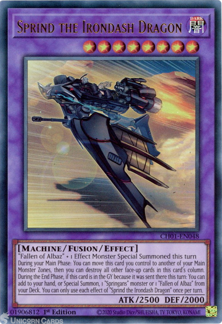 - CH01-EN048 Sprind the Irondash Dragon : Ultra Rare 1st Edition Mint YuGiOh Card