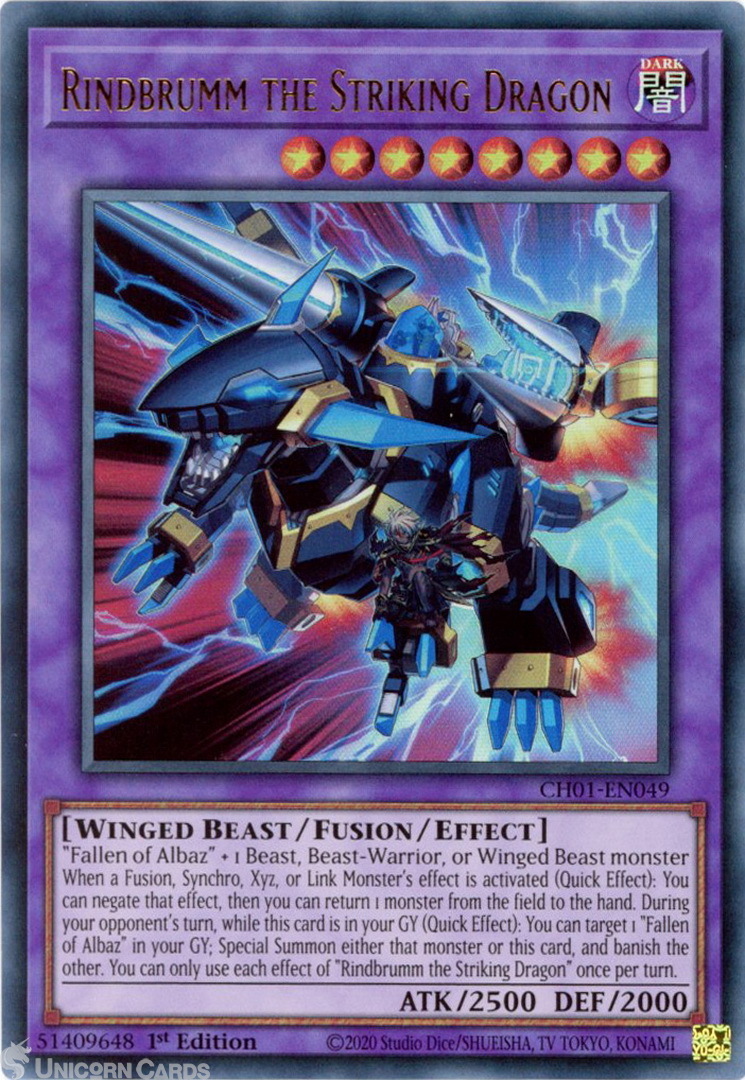 - CH01-EN049 Rindbrumm the Striking Dragon : Ultra Rare 1st Edition Mint YuGiOh Card