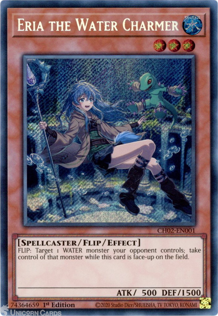 - CH02-EN001 Eria the Water Charmer : Secret Rare 1st Edition Mint YuGiOh Card