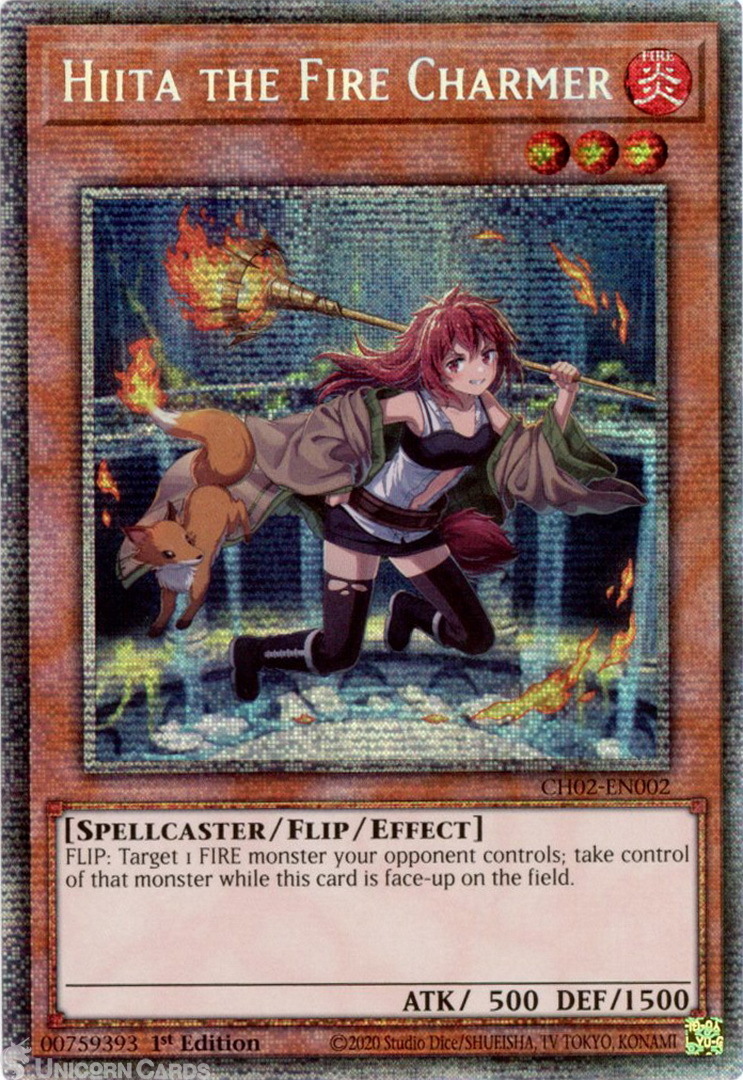 - CH02-EN002 Hiita the Fire Charmer : Starlight Rare 1st Edition Mint YuGiOh Card
