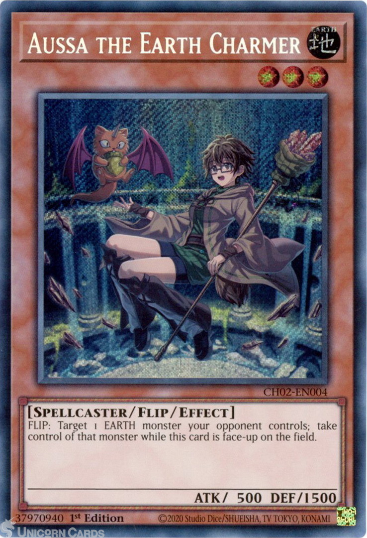 - CH02-EN004 Aussa the Earth Charmer : Secret Rare 1st Edition Mint YuGiOh Card