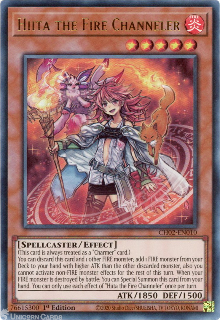 - CH02-EN010 Hiita the Fire Channeler : Ultra Rare 1st Edition Mint YuGiOh Card