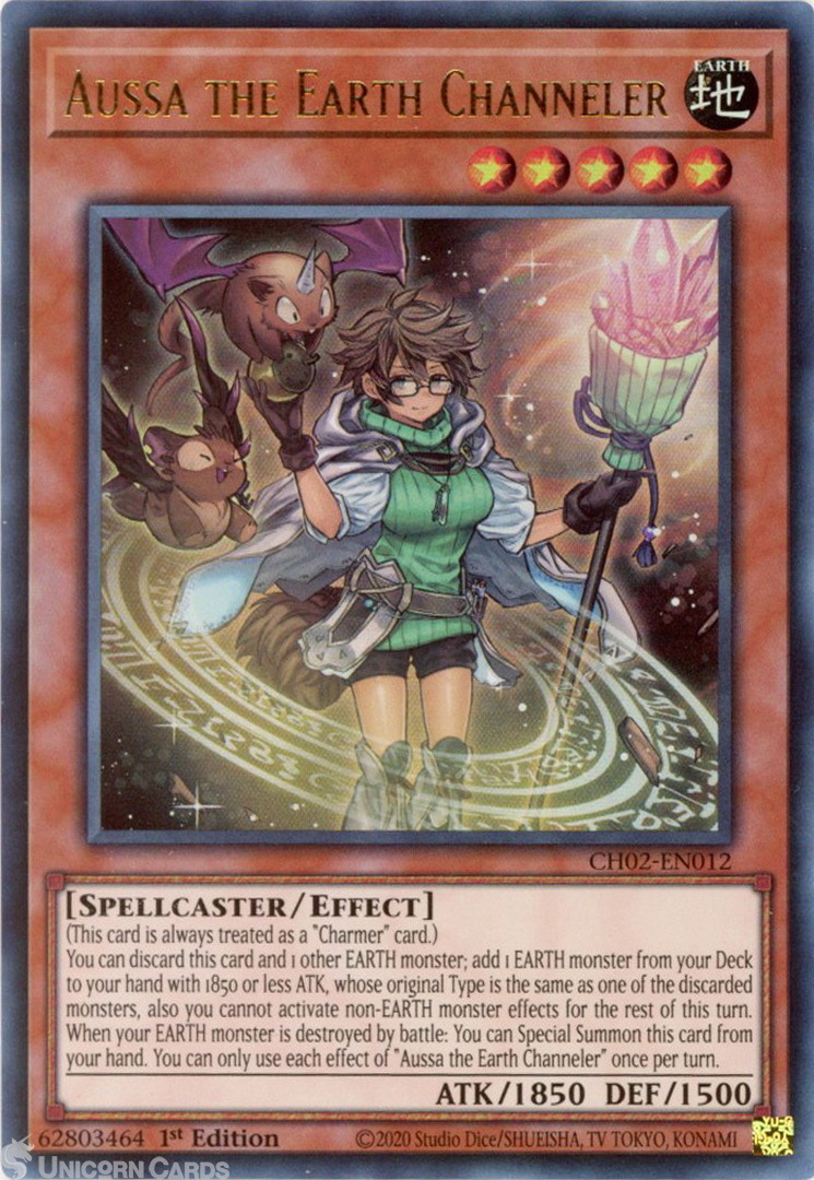 - CH02-EN012 Aussa the Earth Channeler : Ultra Rare 1st Edition Mint YuGiOh Card