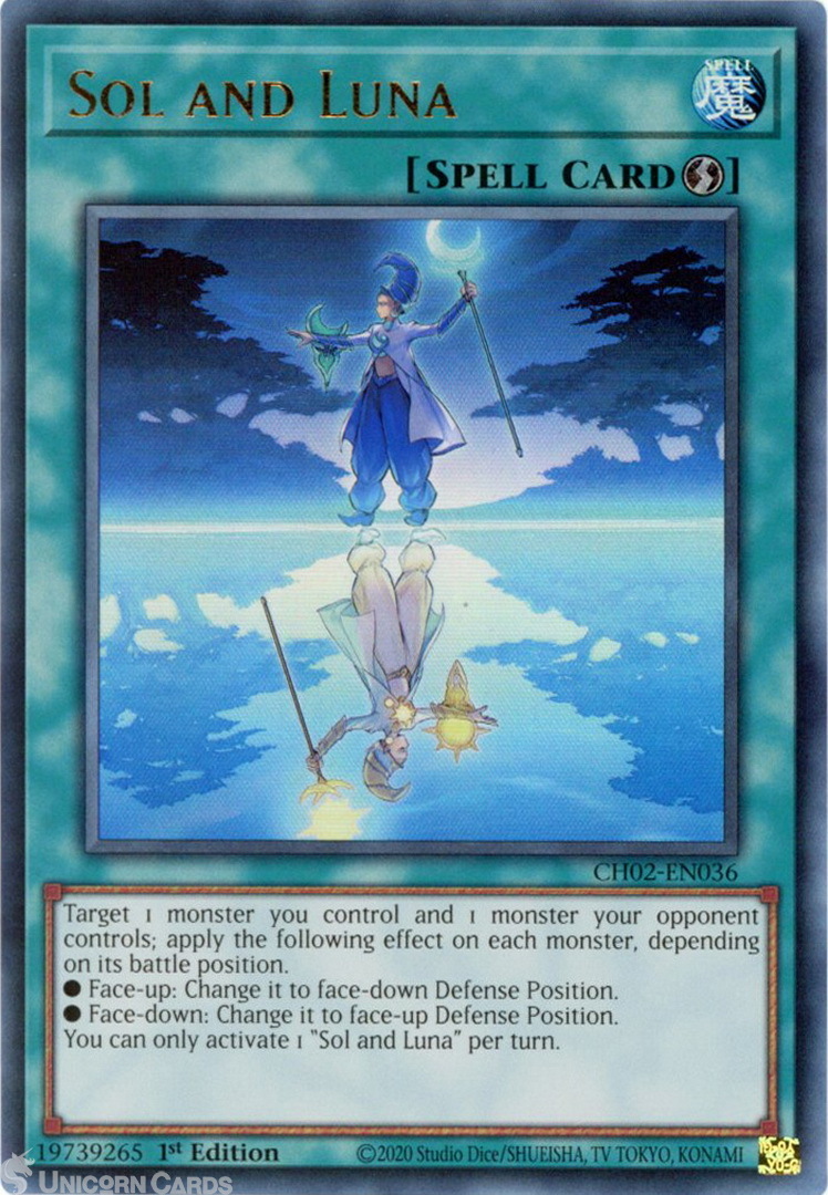- CH02-EN036 Sol and Luna : Ultra Rare 1st Edition Mint YuGiOh Card