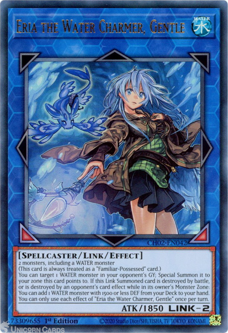 - CH02-EN042 Eria the Water Charmer, Gentle : Ultra Rare 1st Edition Mint YuGiOh Card