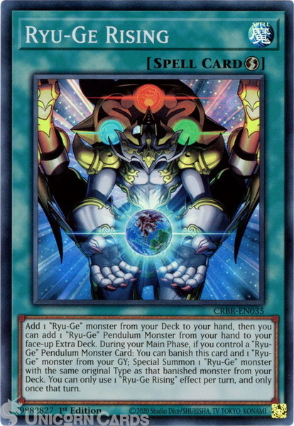 - CRBR-EN035 Ryu-Ge Rising : Super Rare 1st Edition YuGiOh Card