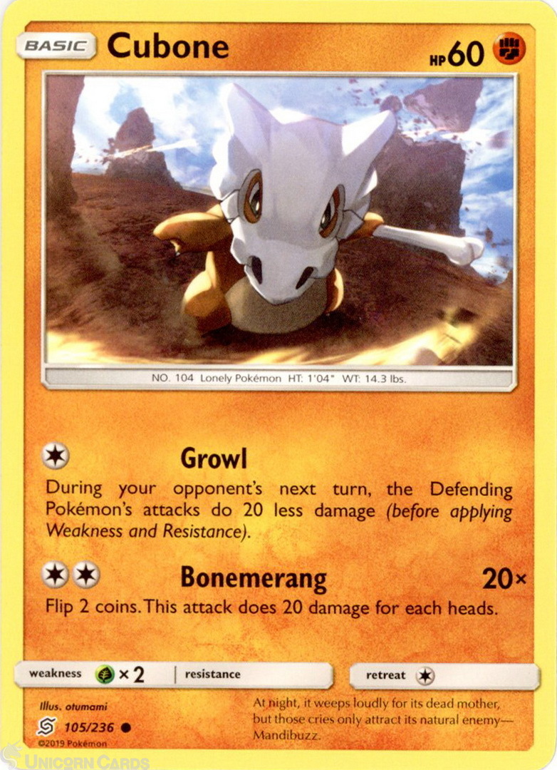 Cubone 105/236 : Common Mint/Near Mint Pokemon Card : SM11: Unified Minds